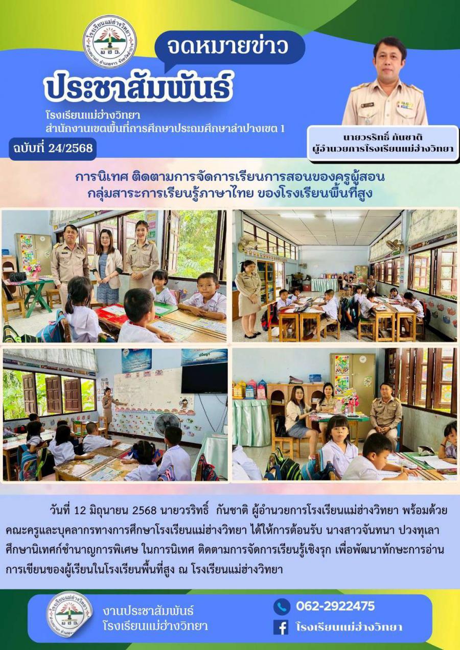 การนิเทศ ติดตามการจัดการเรียนการสอนของครูผู้สอน กลุ่มสาระการเรียนรู้ภาษาไทยของโรงเรียนพื้นที่สูง